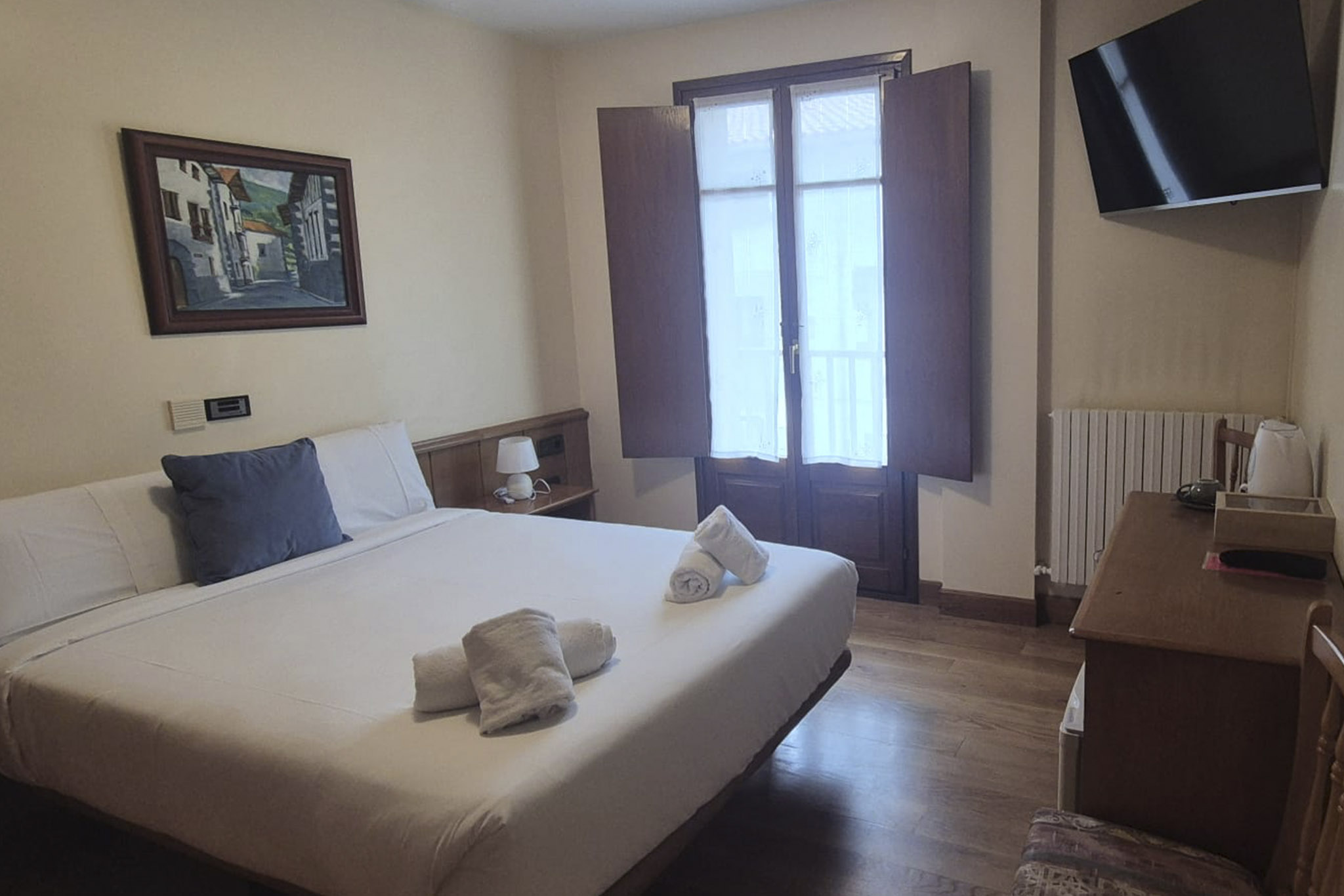 EXCELENTE A base de 704 reseñas Publicado en ShaddaiVerificada Un lugar precioso para visitar ☺ Acogedor y con detalles pensados con mucho cariño ☹ Nada! Un lugar para repetirPublicado en AnaVerificada LO RECOMIENDO 100% ☺ El alojamiento está genial, muy céntrico, se aparca fácil y cerca, limpio, el personal muy amable, el desayuno muy rico y el precio estupendo con el desayuno incluido. Además, nos hicieron descuento en el bar por estar alojados, un detallazo.Publicado en PeterVerificada OK, but could do better ☺ Room was secure and clean. Comfort was fair. ☹ Breakfast was minimal. Not a particularly quick,or warm welcome.Publicado en JuanVerificada FairPublicado en MaiderVerificada GoodPublicado en BritaVerificada Wonderful ☺ La comida, el personal, la ubicación, el precioPublicado en AnderVerificada Sin más ☺ La habitación muy bien y ubicación ☹ Desayuno muy escaso, y el engaño de que te hacen un 10% en comidas, cenas etc por haberte alojado nos dejó perplejos. No repitoPublicado en HeleneVerificada ExceptionalPublicado en FranciscoVerificada Very Good ☺ La cena especial de carnaval, la carne buenísimaPublicado en JosebaVerificada Very Good